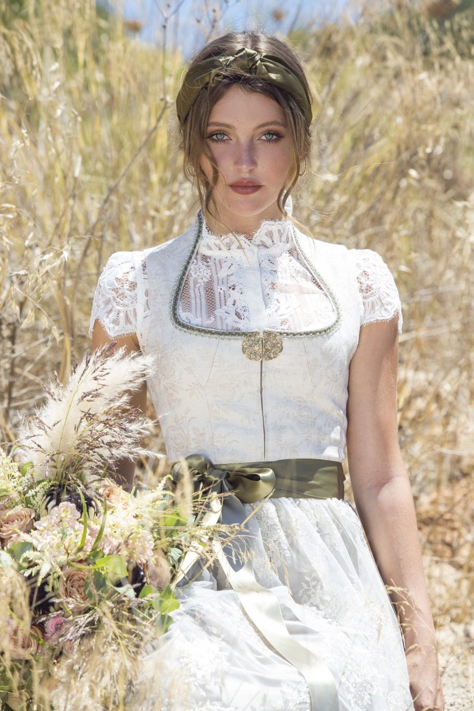 In Tracht zu heiraten wird immer beliebter! Und Paare, die in Tracht heiraten, sind etwas ganz Besonderes. Alpenherz ist inzwischen eines der bekanntesten Braut- und Hochzeitslabel Deutschlands und bietet Hochzeitsdirndlträume in Weiß, Ecrue oder Rosé an.